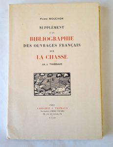 MOUCHON (Pierre) Supplément à Bibliographie des ouvrages français sur la chasse de J. Thiébaud- Paris, Librairie J. Thiébaud, 1953 - Gr. in-8° : xiv p., [1] f. [Abréviations], colonnes 1041 à 1360, [1] f. - Broché, couv. crème impr. en...