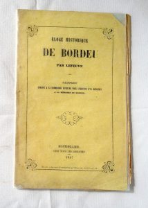 LEFEUVE (Charles) Éloge historique de Bordeu. Rapport adressé à la commission instituée pour l'érection d'un monument à la mémoire de Bordeu - Montpellier, Chez tous les Libraires, 1847 - Plaquette in-8° : broché, couv. n.r.