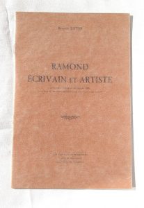 RITTER (Raymond) Ramond écrivain et artiste. (Discours prononcé le 24 juillet 1955, aux fêtes du deuxième centenaire de la naissance de Ramond) - Bagnères-de-Bigorre, Les Éditions Pyrénéennes - In-8° : 14 p., [1] f. bl., - broché, couv....