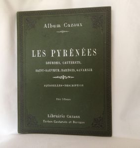 [CAZAUX] Album Cazaux. Les Pyrénées. Lourdes, Cauterets, Saint-Sauveur, Barèges, Gavarnie. Aquarelles - Description - Tarbes, Cauterets et Barèges, Librairie Cazaux, [s. d.] - In-4° : t., [9] f. ; 16 pl. coul. - Cartonnage vert d'eau éditeur...