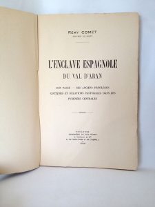 COMET (Rémy) L'enclave espagnole du Val d'Aran. Son passé - Ses anciens privilèges - Coutumes et relations pastorales dans les Pyrénées Centrales - Toulouse, Imp. Du Sud-Ouest, J. Castellvi et Cie, 1929 - Gr. in-8° : [2] f. bl., 218 p., [1] f....