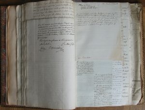 Recueil de documents, montés sur onglets, le plus souvent manuscrits, relatifs au procès de Louis XVI - 2 volumes in-folio, fin XVIIIème siècle, dans une reliure signée de Durvand (fin XIXème-début XXème) en maroquin bordeaux, décor à la Du Seuil, dos à nerfs très ornés, fleurs de lys et bonnets phrygien au dos et sur les plats, au centre des plats : fer avec texte " République française, Convention nationale, procès-verbaux, 1792 ”. Les documents, de nombreuses dizaines, sont le plus souvent des copies portant une mention de type " Collationné et certifié conforme à l'original déposé à la commission des vingt un de la Convention Nationale ” suivent les noms des commissaires proposés à cette tâche : Charles COCHON DE LAPPARENT, Jean DUPRAT, Denis-Marie PELISSIER et Joseph- Clément POULLAIN DE GRANDPREY. On y trouve également des originaux et des copies qui n'ont pas été vus par les commissaires, certains sont adressés directement ou indirectement à François-Denis TRONCHET (1723-1806) ou à Chrétien-Guillaume LAMOIGNON DE MALESHERBES (1721-1794), tous deux avocats de Louis XVI. Ces documents, copies et originaux, sont répartis en 14 groupes séparés par des feuillets portant un numéro de " partie ”, un numéro de " chef ” [d'accusation] et des annotations et observations de deux mains différentes. Cependant le classement ne semble pas être totalement maìtrisé. Un dossier concerne la « convention » ou « traité » de PILLNITZ. Sont cités ou ont apposé leur signature : Le marquis Louis LE PELETIER DE ROSAMBO (gendre de MALESHERBES, guillotiné le même jour que son beau-père, le 22 avril 1794). PierreHenri LEBRUN-TONDU (1754-1793) Ministre des Affaires étrangères. Au fil des pièces on trouve les noms de RAISSON, secrétaire général du Département de Paris, François- Emmanuel de TOULONGEON, Louis-Alexandre DUFRESNE DE SAINT-LEON (1752-1836, directeur de la dette publique, accusé de prévarication), Mme de SAINT-CHAMANS, épouse d'Antoine de CAnOuVILLE DE FARRETOT (lettre adressée à MALESHERBES), COSSE-BRISSAC (commandant en chef de la Garde Constitutionnelle de Louis XVI), François BARBE-MARBROIS, Arnaud de LAPORTE (Intendant de la Liste civile), Philippe de NOAILLES (duc de POIX, duc de MOUCHY, capitaine des Gardes du corps du roi), etc ...