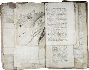 Manoscritti a inchiostro seppia raccolti in 2 volumi (mm 455x290 mm) con legature in pergamena. Fogli molto ben conservati. (2). Si tratta di una raccolta di atti notarili (con signa tabellionis), compromessi, atti di vendita, obbligazioni ecc. nei quali sono citate le città di Bologna, Firenze, Ferrara ecc. Bellissimi esempi di grafie dell'epoca: gotica (anche bolognese) e cancelleresca. Alcuni documenti (uno con disegno rappresentativo di una proprietà con terre, boschi e castello) sono costituiti da diversi fogli e hanno dimensioni differenti: i piÙ grandi hanno una lunghezza di 1850 mm. Da studiare.
