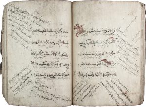 Manoscritto cartaceo (mm 260x183). Carte [68]. Testo a due inchiostri. Consistenti lavori di tarlo a gran parte delle carte, talvolta con perdita di alcune lettere. Legatura in piena pelle con piatti riccamente decorati con elaborate cornici concentriche di filetti e losanga centrale. Persi il piatto posteriore e il dorso, parzialmente staccato quello anteriore. Da studiare.