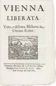 Vienna liberata. Vera e distinta Historia in Ottava Rima. Venezia, Milano & Piacenza: nella stampa Duc. Di Gio. Bazachi, 1683.