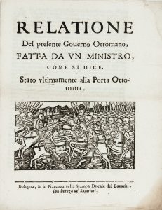 Relazione del presente Governo Ottomano fatta da un Ministro come si dice Stato ultimamente alla Porta Ottomana. Bologna & Piacenza: Stampa Ducale del Bazachi, 1684.