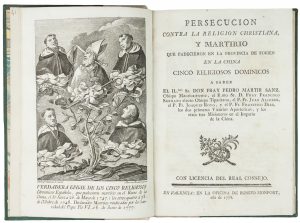 Persecucion contra la religion christiana, y martirio que padecieron en la provincia de Fokien en la China cinco religiososo dominicos... En Valecia: En la Oficina de Benito Monfort, 1778.