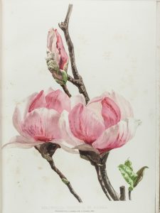 In-4°; (mm 310x240). Pagine [6], 324 con 18 tavole a colori fuori testo raffiguranti fiori e piante, tutte protette da velina. Rare fioriture marginali alle carte. Legatura moderna in mezza pergamena con angoli e piatti in percallina color avorio. Titolo impresso in oro al dorso. Al contropiatto anteriore ex-libris di precedente proprietario. Prima ed unica edizione.