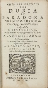 Boyle Robert, Chymista scepticus vel dubia et paradoxa chymico-physica circa Spagyricorum Principia. Rotterodami: Apud Arnoldum Leers, 1668.
