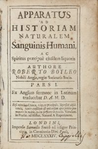 Boyle Robert, Apparatus ad historiam naturalem sanguinis humani... Londini: Impensis Samuelis Smith, 1684.