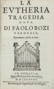 Bozi Paolo, La Eutheria. Tragedia nova [...] novamente posta in luce... In Venetia: Appresso Ricciardo Amadino, 1588.