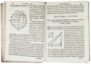 In-4°; (mm 265x145). Pagine [8], 250, con 4 tavole xilografiche ripiegate e 1 tabella a doppia pagina fuori testo e molti diagrammi e figure geometriche incisi in legno nel testo. Vignetta xilografica al frontespizio, testatine, capilettera e finalini incisi in legno. Buon esemplare, con qualche carta lievemente brunita e sporadiche macchie. Legatura coeva in piena pergamena rigida con titoli manoscritti al dorso. Quarta edizione, definitiva, «che si può considerare effetiv. come la 2a, in quanto le due preced. ediz. non sono che semplici ristampe della prima ediz.» (Choix 6275). Opera di derivazione galileiana nella quale vengono fornite definizioni del compasso di proporzione, della linea aritmetica, della linea geometrica, i gradi di circolo ecc. Cfr. Cinti 156; Piantanida 1640; Poggendorff I, 386; Riccardi I, 271; Sotheran 928.