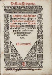 Cassiodorus Flavius Magnus Aurelius, Hystoria tripertita. [Lione]: [Jacques Giunta], 1526.