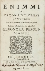 Catone Uticense [pseud. di Leone Santucci], Enimmi. In Venetia: per Andrea Poletti, [1698?].