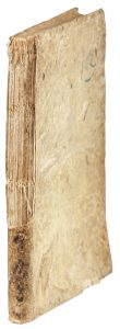 In-4°; (mm 198x155). Carte [4], 82. Marca tipografica incisa in legno al frontespizio e numerose figure in xilografia nel testo. Esemplare mediocre, con bruniture accentuate e gore d'acqua sparse, un lavoro di tarlo a circa 20 carte nel margine inferiore senza perdita di testo. Alcune pagine parzialmente staccate. Legatura in pergamena floscia coeva con dorso in parte perduto. Cfr. Gamba, 1384: «Oltre a quest'opera [...] altra ne scrisse Erone intitolata i Spiritali, o Macchine a vento, di cui abbiamo due versioni, una fatta da Giambattista Aleotti [...] e altra da Alessandro Giorgi»; Graesse III, 258; Riccardi I, 604 ne sottolinea la rarità, definendola una «pregiata traduzione».
