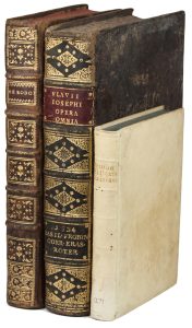 In-folio (mm325x225). Pagine [12], 51, 708, [32]. Esemplare scompleto delle 4 carta di tavole piÙ volte ripiegate ma completo del testo, pur con alcune pagine invertite dal legatore. Bruniture iniziali, arrossature e fioriture sparse e altre minime mende. Legatura settecentesca in pieno vitello nocciola spruzzato a formare un intreccio geometrico ai piatti, titoli e decorazioni a ferri floreali al dorso. Qualche spellatura ai piatti. Ex-libris Biblioteque du Ch.er De Village al contropiatto. SI AGGIUNGE: Iosephus Flavius, Antiquitatum Iudaicarum libri XX, ad vetera exemplaria diligenter recogniti... Basileae: In officina frobeniana, 1534. 1 volume in-folio (mm 320x210) in legatura settecentesca in pieno vitello marrone spruzzato. Lacune nel margine di una carta, con asportazione di parte del testo e altri difetti. SI AGGIUNGE: Bembo Pietro, Della historia vinitiana [...] volgarmente scritta libri XII. In Venetia: Per Giordano Ziletti, 1570. (3). I OPERA: Renouard, Estienne 192.25. Lotto non passibile di restituzione.