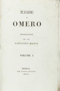Homerus, Iliade [...] traduzione del Cav. Vincenzo Monti. Volume I (-III). Brescia: Per Nicolò Bettoni, 1810.