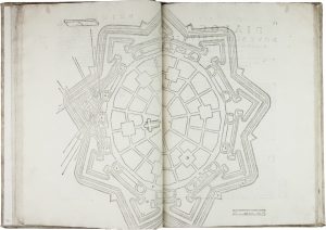 Lorini Bonaiuto, Delle Fortificationi [...] Libri Cinque, ne' quali si mostra con le più facili regole la scienza con la pratica, di fortificare le città, & altri luoghi sopra diversi siti... Venetia: G.A.Rampazetto, 1597 (Al colophon:) 1596.