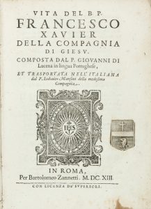 Lucena Joao (de), Vita del B.P. Francesco Xavier [...]. Composta [...] in lingua portughese, et trasportata nell'italiana dal p. Lodovico Mansoni... In Roma: per Bartolomeo Zannetti, 1613.