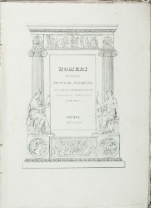 2 opere in 1 volume in-folio (mm 370x255). Pagine [2], 25, [1] con 59 carte di tavole incise in rame, 1 non numerata. Frontespizio inciso. LEGATO CON: Id., Virgilii picturae antiquae ex codicibus Vaticanis. Romae: [s.e.], 1835. Pagine [2], 19, [1], con 5 carte di tavole incise in rame non numerate e 67 numerate. Frontespizio inciso. Bell'esemplare in barbe, con fioriture sparse e una carta della seconda opera quasi del tutto slegata. Brossura muta coeva. -