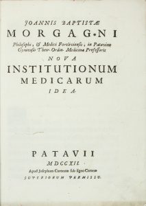 Morgagni Giovanni Battista, Nova Institutionum medicarum idea. Patavii: Apud Josephum Coronam, 1712.