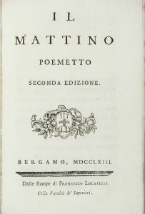 Parini Giuseppe, Il mattino. Poemetto. Seconda edizione. Bergamo: Francesco Locatelli, 1763.