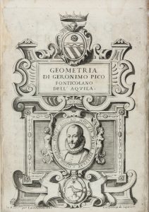 Pico Geronimo, Geometria. In Roma: per Carlo Vullietto, 1605 (Al colophon:) Nell'Aquila: appr. Lepido Facij, 1597.