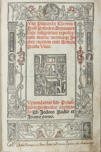 Plutarchus, Vite [...] post Pyladen Brixianum longe diligentius reposite: cum maiore verioreque Indice: necnon cum Aemilii Probe Vitis. [Parisiis]: Venundantur sub Priuilegio regio in calce explicando Ab Jodoco Badio et Joanne paruo, s.d. (Al...