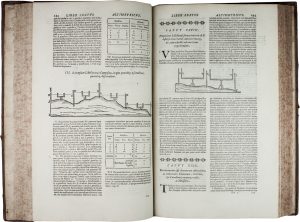 In-folio (mm 365x230). Pagine [20], 640. Esemplare senza l'antiporta incisa, spesso mancante. Con molte illustrazioni di figure geometriche e schemi xilografici nel testo. Fregio al frontespizio, insegna della compagnia di GesÙ a carta [10], marca dello stampatore in fine, testatine, capilettera e finalini incisi in legno. Minimi difetti marginali al frontespizio, altrimenti ottimo esemplare. Legatura coeva in mezza pelle con titoli dorati entro tassello al dorso a 6 nervi e comparti decorati in oro con fregi floreali; tagli spruzzati di rosso. Dorso e piatti leggermente lisi e con alcuni interventi di restauro. Prima edizione, rara e pregiata. A questo esemplare manca l'antiporta segnalata da Riccardi. Cfr. Brunet IV, 1227; Graesse VI, 109; Houzeau-Lancaster, 10922: «grande opera relativa all'astronomia, le misurazioni della Terra, etc.»; Riccardi II, 372: «dotta opera […], quale può considerarsi il piÙ completo dei trattati di geografia matematica fino allora pubblicati»; Sommervogel VI, 1800.