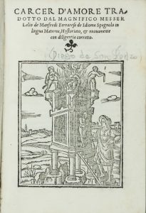 San Pedro Diego (de), Carcer d'Amore tradotto da [...] Lelio de Manfredi ferrarese de idioma spagnolo in lingua materna, historiato... (Al colophon:) Stampato in Vinegia: per Francesco Bindoni & Mapheo Pasini compagni, 1546.