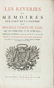 Saxe Hermann-Maurice (comte de), Les Reveries ou Memoires sur l'art de la guerre... A La Haye: chez Pierre Gosse Junior, 1756.