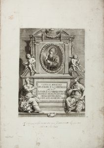 In-folio (330x230 mm). 21 tavole calcografiche con le storie del Santo. Alcune carte con minimi fori di tarlo e altre con restauri, l'ultima controfondata. All'interno del volume è conservato anche un foglietto volante sul quale è incisa l'immagine de «La Pietà» (fine XVII-inizio XVIII secolo). Brossura moderna allentata. Note manoscritte al piede delle prime due carte. Si tratta di una biografia per immagini del celebre Santo, patrono della Calabria, dei naviganti, dei pescatori e invocato contro le epidemie, gli incendi e la sterilità. Le incisioni sono opera di Simone Durello, C. Laurenzio e G. B. Labe. Ancora oggi il Santuario di San Francesco di Paola è meta di pellegrini provenienti da tutto il mondo.