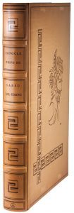In-folio (mm 500x350). Pagine 130, [10] a fascicoli sciolti + 6 litografie originali a colori di Sassu firmate a mano a matita dall'Autore. Doppio frontespizio, in inchiostro rosso e nero. Esemplare n. 45 su una tiratura limitata a 100 copie, uno dei 75 siglati con numeri arabi contenenti ciascuno le litografie realizzate con la tecnica all'acquarello tirate a colori in torchio a mano. Brossura editoriale bianca con titolo a sbalzo. Conservato in custodia in pieno vitello con titoli e fregi impressi a inchiostro bruno al dorso e ai piatti, con effigie di Sofocle al piatto anteriore da disegno appositamente realizzato da Sassu. -