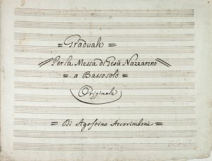 Accorimboni Agostino, Graduale / Per la Messa di Gesù Nazzareno / a Basso solo / Originale / [...]. Non datato [seconda metà del XVIII secolo].