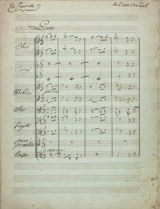 Manoscritto musicale. Partitura. 25 pagine. Manoscritto a inchiostro seppia su carta azzurrina. Testo in francese. Indicazione del tempo: ‘Lento '. Dimensioni: 300x230 mm. SI AGGIUNGE: Carafa Michele, Duetto / Mendace fu il fabbro / nell'Opera Il Sacrificio d'Epito / [...] / composto in Venezia / ed Eseguito dalle Sigg.e / Morandi e Cortesi [...]. Non datato [ma inizio XIX secolo]. Manoscritto musicale. Spartito per canto e pianoforte. 24 pagine. SI AGGIUNGE: Id., Cavatina / Amor, Fortuna, e Pace / nell'Opera Adele di Lusignano. Manoscritto musicale. Spartito per canto e pianoforte. 18 pagine. (3). I DOCUMENTO: Da repertori musicali non risulta che Paisiello abbia scritto un oratorio dal titolo Saul.