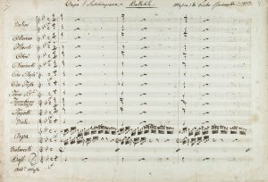 Manoscritto musicale autografo firmato e datato. Partitura non completa (mancano le battute finali). 12 pagine. Manoscritto a inchiostro seppia su carta pentagrammata (16 pentagrammi). Legatura in mezza pelle con angoli. Tassello al piatto superiore sul quale è impresso il nome dell 'autore, il titolo dell 'opera e l 'indicazione «Autografo». Dimensioni: 260x380 mm. Ballabile probabilmente scritto per un melodramma. Nel 1837 Raimondi aveva composto Viclinda per il Teatro S. Carlo di Napoli.