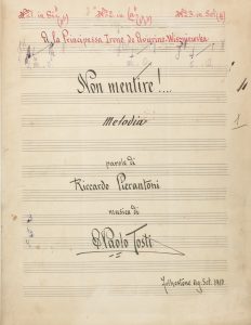 Tosti Francesco Paolo, Non mentire!... / Melodia / parole di / Riccardo Pierantoni / [...] / Folkestone ag. set. 1910.