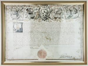 Nomina di Pier Andrea Forzoni in qualità di 'Segretario dell'Ambasciata in Firenze'. Datato 5 agosto 1707, Firenze.