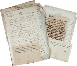 Raccolta di oltre 70 lettere di librai inviate al bibliofilo. Datate 1820-1865.