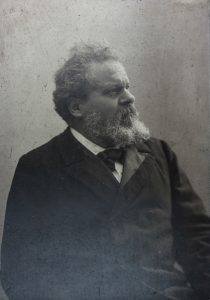 Fotografia a mezzo busto del poeta realizzata dallo studio fotografico «Giacomo Brogi» di Firenze. Ritratto in passepartout un poco danneggiato. Al verso del supporto note manoscritte di diverse mani tra cui la dedica autografa del poeta «Omaggio al caro Palazzi [Pilade (di altra mano)] / Bologna Giosuè Carducci / 29 ago 18[96 di altra mano]». Dimensioni: 380x280 mm. -