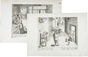 Anonimo del XVII secolo, Due stampe popolari sulla vita del puttaniere. XVII secolo.