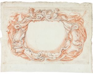 Scuola emiliana della prima metà del XVII secolo, Studio per cartella con ornati. Prima metà del XVII secolo.