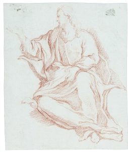 Scuola romana del XVIII secolo, Figura maschie seduta (Cristo che predica alle genti?). Prima metà del XVIII secolo.