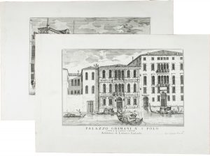 Acqueforti. mm 205x290 cad. Fogli mm 287x415 cad. Fanno parte della serie Le fabbriche e vedute di Venezia eseguite dal Carlevarijs nel 1703. (4). Ottima conservazione.