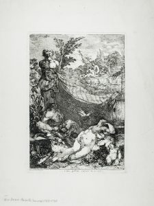 Acquaforte. mm 210x300. Foglio: mm 375x480. Secondo stato su 2. Firmato in basso a sinistra: “David Gen. Inv. fecit; e sotto:...vino pellite curas. Hor. Lib. i. Od. 7”. Riferimenti bibliografici: M.Newcome Schleier, G.Grasso, Giovanni David, 2003, numero 116, p. 133. Ottima conservazione.