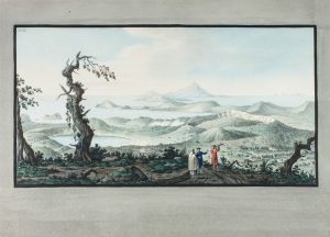 Incisione ad acquaforte in splendida coloritura coeva a tempera. mm 215x395. Foglio: mm 444x312. Da William Hamilton, Campi Phlegraei... Napoli, Fabris, 1776, tav. XII. -