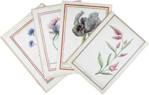 Ferdinando Morozzi , Lotto composto di 4 disegni su carte sciolte. Amaranthus, Iris, Cyanus segetum, Peonia. 1780-1785ca.