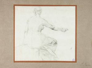 Sinibaldo Scorza [attribuito a], Figura muliebre nuda di spalle, con braccio destro alzato. Prima metà del XVII secolo.