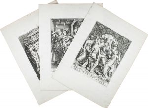 Serie completa di 7 tavole numerate 1-7 più il frontespizio. Bulini. mm 225x180. Fogli: mm 370x270. Hollstein, (Duch and flemish), v. 15 p. 142-143. (8). Bellissime impressioni fresche e marginose.
