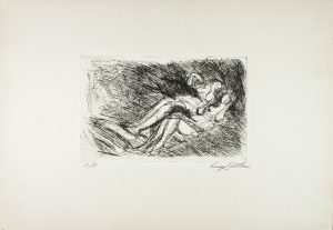 Acquaforte su velina applicata. mm 160x245. Foglio: mm 345x495. Firmata e numerata a matita in basso ai lati. Esemplare n. 10/17. Bellissima prova impressa su carta avorio liscia a grandi margini recante timbro a secco delle edizioni "Documento". -